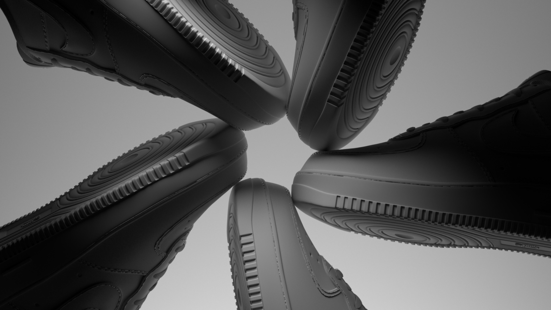 Product ad for Nike's iconic shoes Air Force One (C4D / After Effects)